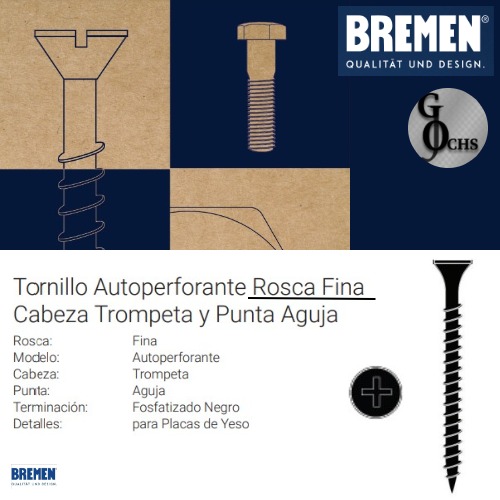 tornillos punta aguja para durlock paso fino 6x5/8 (200 unid.)
